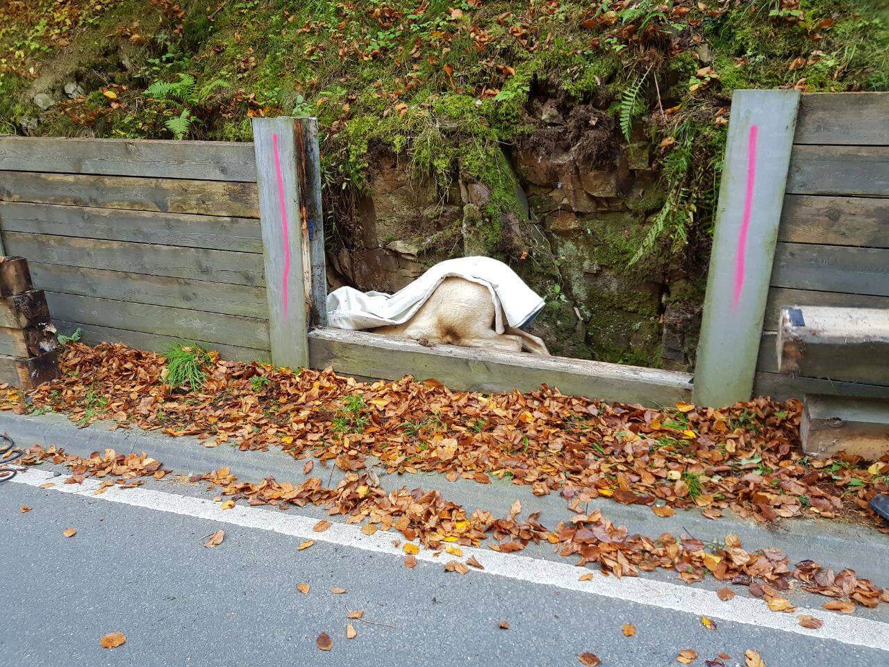 Az állat az úton akart átkelni, de valami megriaszthatta és ijedtében beszorult a kerítés közé. Összesen 20 tűzoltónak kellett kimennie a helyszínre, hogy segítsenek az állatnak. Leterítették egy nagy pokróccal, szerették volna megnyugtatni ezzel, hogy ne okozzon saját magában vagy éppen a segítőkben kárt.