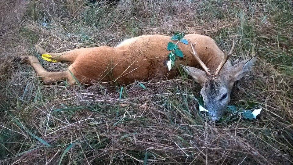 Hosszas, várakozásnak tűnő másodpercek, ott van, lőhető, szépen áll, mély lélegzet… és végre eldördült a várva várt lövés, ami azonnal helyben marasztalta a bakunkat. Kedves vendégünk, még bakot nem lőtt és egy 30-06-os gavallér puskával álltunk a terítékre hozott bak mellett. A középkor elején járó bak mellett, meghatódva álltunk és néztük a bakunkat. Fantasztikus érzés volt, hogy férj gratulálhatott kedves nejének első bakjához. Én elmentem töretet tépni, és messziről mosolyogva néztem a házaspár örömét.