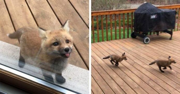 A rókák köztudottan nagyon félénk állatok, de ezek a csöppségek a szabályt erősítő kivételek közé tartoznak. A nagymama, miután észlelte a jövevényeket, kiment hozzájuk, az egyik róka pedig pár nap után úgy felbátorodott, hogy elment az üvegajtóig, és meg is nyalta azt.