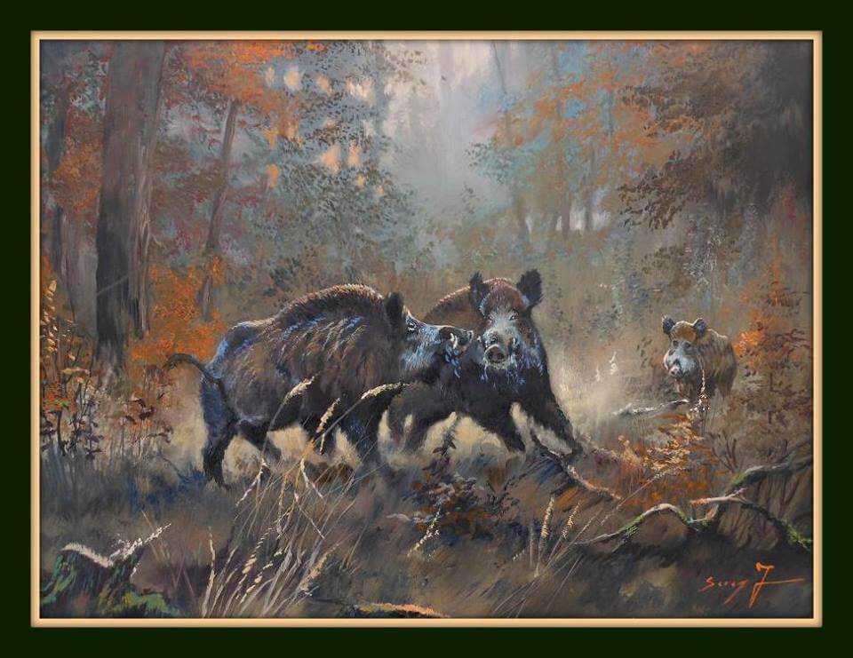 Sokféle munkáim vannak, az apróvadtól a nagyvadig, de inkább a nagyvadak a jellemzőek, mert ahol élek a Gödöllői dombságban inkább a nagyvadak vannak többségében. Szarvas, vaddisznó, muflon, őz, ezeket szívesen festem, nagy kedvencem a vaddisznó, róka és az erdei Szalonka, tájban elhelyezve.