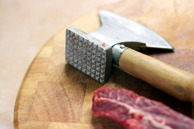 Fontos, hogy a húst határozott csapásokkal ütögesd, ám ne vidd túlzásba, hiszen a művelet célja nem a hús péppé verése, hanem a lazítása. A klopfolók feje azért nagy és nehéz, hogy segítse a főző munkáját. Hagyd, hogy főként a saját súlyával csapódjon a húsba, és te csak egy kicsivel toldd meg az erejét. A vastagabb részekre valamivel nagyobbat, a vékonyabbakra kisebbet üss.